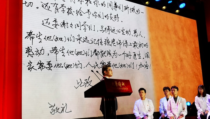 张黎声忆起,秦老爷子与同学们一起参加“缅怀遗体、器官捐献者”活动,手捧着一个平板电脑,给学校党委副书记朱惠蓉翻看老伴儿生前和家人的生活照片。当翻到老伴儿的遗体捐献仪式照片时,老人的眼光显得格外亮:“朱书记,如果学校给我举行遗体捐献追思会,我没有其他要求,唯一的要求是,跟我老伴一样,请在我身上覆盖一面中国共产党旗。”医学生们不禁感叹这生命的长度,以及生命的宽度和深度。