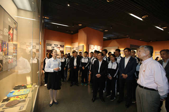 示范党课让大家在拥有12000余件珍贵藏品的乒博馆内,聆听中国乒乓球发展历程和老中青三代国乒人为国争光的故事。将乒乓文化及其历史底蕴融于现代展陈艺术之中,充分展现了国乒的奋进之路和精神内涵。