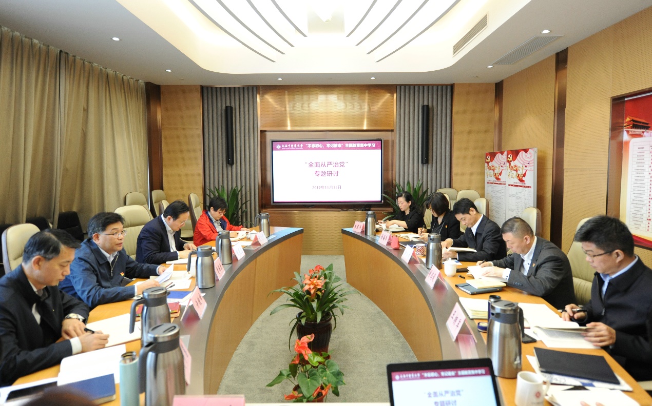 11月11日上午,校党委常委在行政中心418会议室举行“不忘初心、牢记使命”主题教育集中学习,围绕“全面从严治党”举行专题研讨。校党委书记曹锡康主持会议并强调,全面从严治党要抓住“关键少数”,发挥领导干部的“头雁效应”,从学校党委尤其是党委常委会做起,班子成员要进一步加强党性修养,充分发挥领导干部的示范引领作用,推动学校各项工作高质量发展;要加强“四责协同”,督促指导各直属党组织切实承担主体责任,打破“中梗阻”,推动全面从严治党向基层延伸、向纵深发展;要严肃党内政治生活,营造风清气正的政治生态,要进一步提振干部群众干事创业精气神,各级党组织要为担当者担当、为作为者作为、为干事者撑腰。