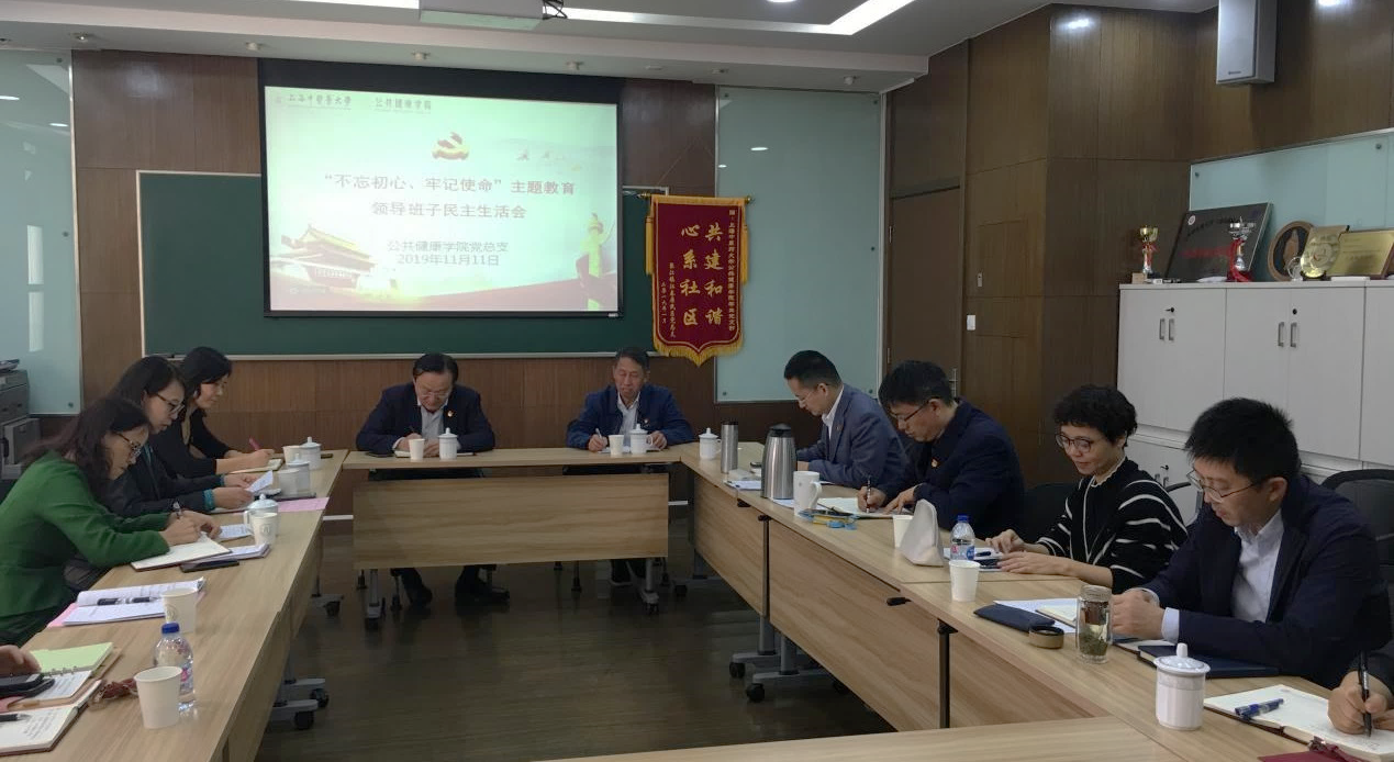11月11日下午,公共健康学院领导班子召开“不忘初心、牢记使命”主题教育专题民主生活会。校长徐建光出席指导,党委校长办公室副主任张怡、校主题教育第五指导组组长夏国荣、宋莉君参加会议,公共健康学院党总支书记段艳霞、副书记干旦峰、副院长赵海磊、张赟彬及党总支委员、党支部书记、科室主任等十余人参会。