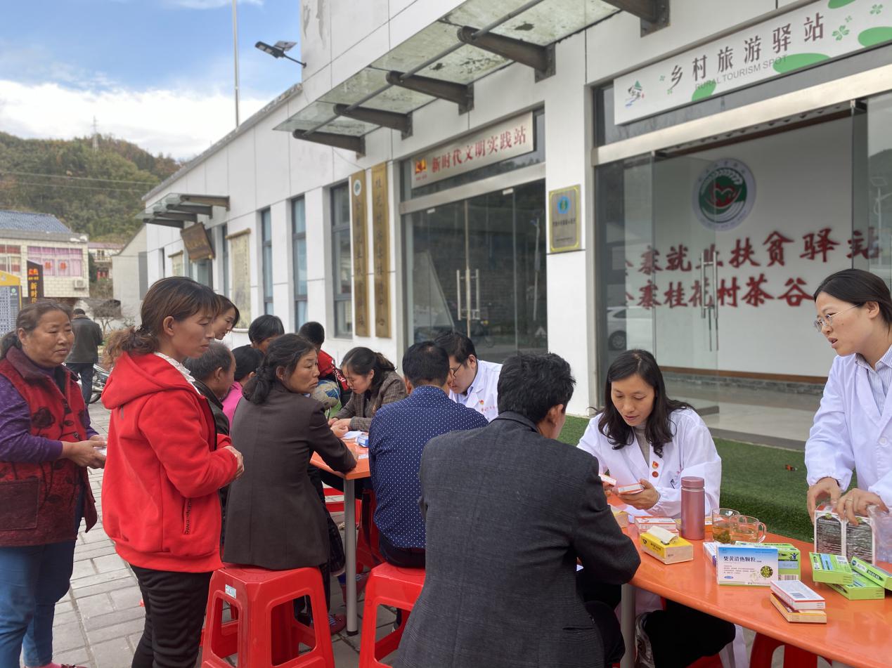 11月15日下午,师生们来到桂花村村民活动中心,为村民提供中医健康咨询、推拿按摩以及日常保健讲解服务。郭峰调研当地整体医疗情况,学院教师刘国萍、钱海在健康咨询服务中,告诉村民要利用好大别山资源进行食疗。到场的硕博士生在学院老师的指导下开展实践,提醒村民要选对药、用对药,养成良好的生活习惯;教授日常保健动作;为村民提供专业咨询。义诊活动中,百余名村民前来看诊,义诊活动一直延续到下午5点。参与活动的学院师生更加深刻地认识到,在物质生活水平不断提高的今天,人民群众对美好生活的向往,对更健康、更高质量生活的不断追求。