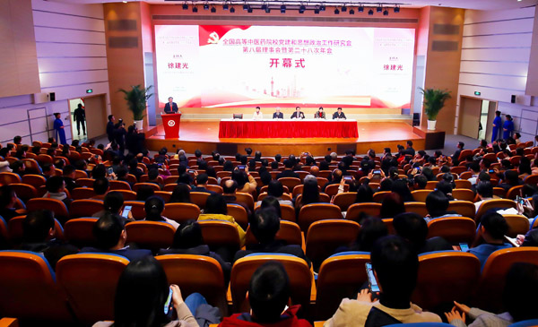 12月26日至28日,全国高等中医药院校党建和思想政治工作研究会第八届理事会暨第二十八次年会在BEAT365英国官网召开,来自全国26所高等中医药院校的党委书记、党务部门负责人、党组织负责人、研究会理事和获奖代表等300余人相聚一堂,聚焦坚持党对教育工作的全面领导、紧抓立德树人根本任务及思政工作生命线、全面提高基层党建质量等主题开展深入交流研讨。