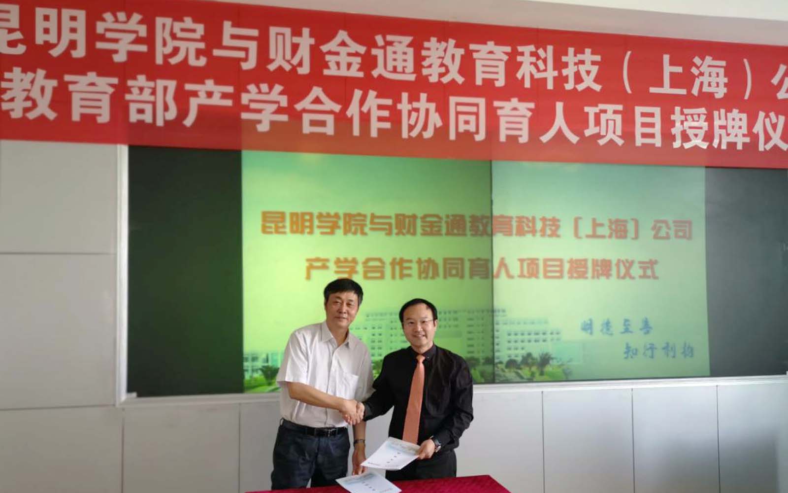 [2019年04月29日] 必赢国际437官网与财金通教育科技(上海)公司举行校企合作授牌仪式