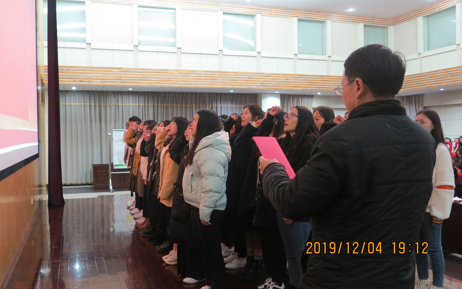 典礼开始,方永昆老师作了讲话,他对必赢国际437官网近期支部工作作出了总结,勉励入党积极分子继续努力,积极向党组织靠拢,争取早日加入中国共产党。接着带领201911月新接收的预备党员进行了入党宣誓。