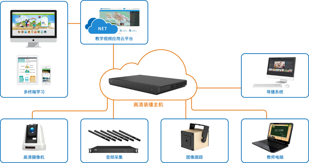 录播设备在前端采集视音频,制作优质的教学视频资源。然后将优质教学视频资源上传至资源管理应用平台,提供给用户点播、大规模直播等功能,将教学视频资源充分利用。在区域内,结合录播设备与资源管理应用平台,将视频资源整合应用,达到资源最优化处理。还将提供基于教育云架构的资源服务、教研应用等内容,并能满足不同客户端的体验。