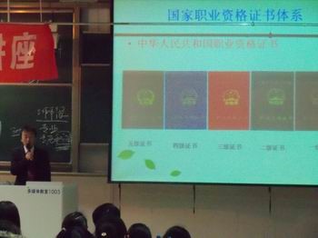 首先由苏振卿老师就工商管理专业应持有的证书进行了介绍,并一一说明了其重要性。接着由刘克伟介绍了证书的主要特征以及各个证书考试的流程,如何根据自己的情况选择要考的证书,并且对工商管理课程与资格证书以及物流师、营销师、人力资源管理师等内容介绍了基本框架。主讲人杨洋从仪容仪表,还有口才表述等方面详细介绍了高级人力资源管理师。同学们就考证问题也积极向老师提问。最后,由管理教研室主任宋毅老师做了总结。