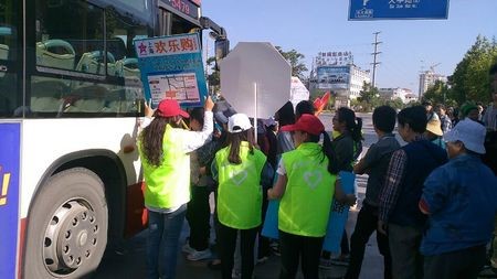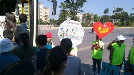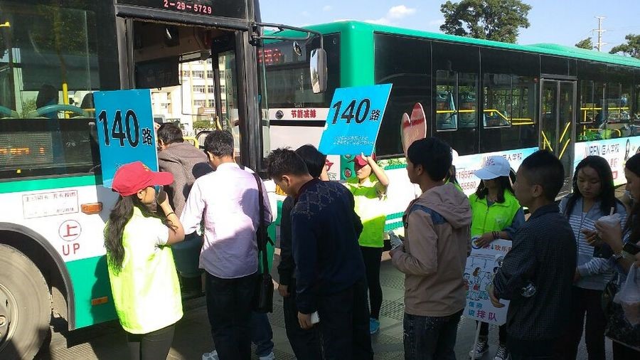 此次文明公交的活动中,志愿者们在公交车快要到站的时候举出相应车次的牌子,以方便乘客的出行。同时志愿者会让各位乘客排队依次上车,形成有序的上车秩序,在志愿者的组织下大大改善了以往无序混乱的场面。此次的活动得到了民众的大力支持,大家主动排队依次上车,形成了一个井然有序的上车环境。
