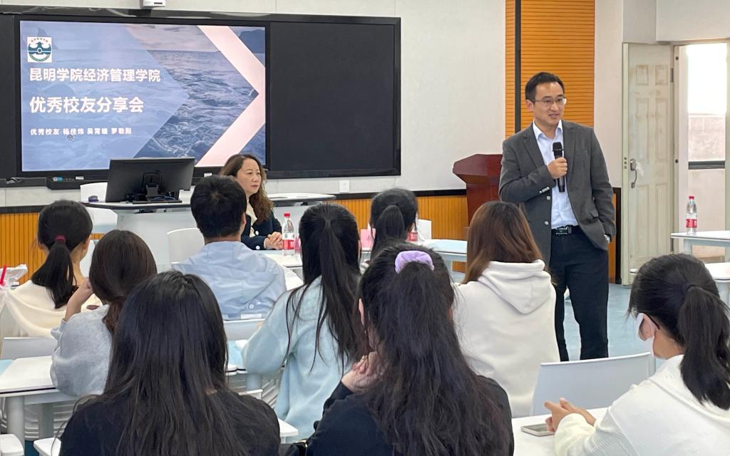 为深入学习贯彻党的二十大精神,统筹做好学院校友会和就业创业工作,11月12日,必赢国际437官网邀请2010届优秀校友、云南锡业股份有限公司董事会秘书杨佳炜,2015届优秀校友、昆明经开区阿拉街道航天社区党委副书记罗敬刚和上海钧正网络科技有限公司(哈啰出行)小哈换电运营中台资产效率负责人吴霄婕在惟行楼1301智慧教室做分享讲座。学院研究生、本科生代表参与分享会,会议由学院党委副书记鲍鲲主持。