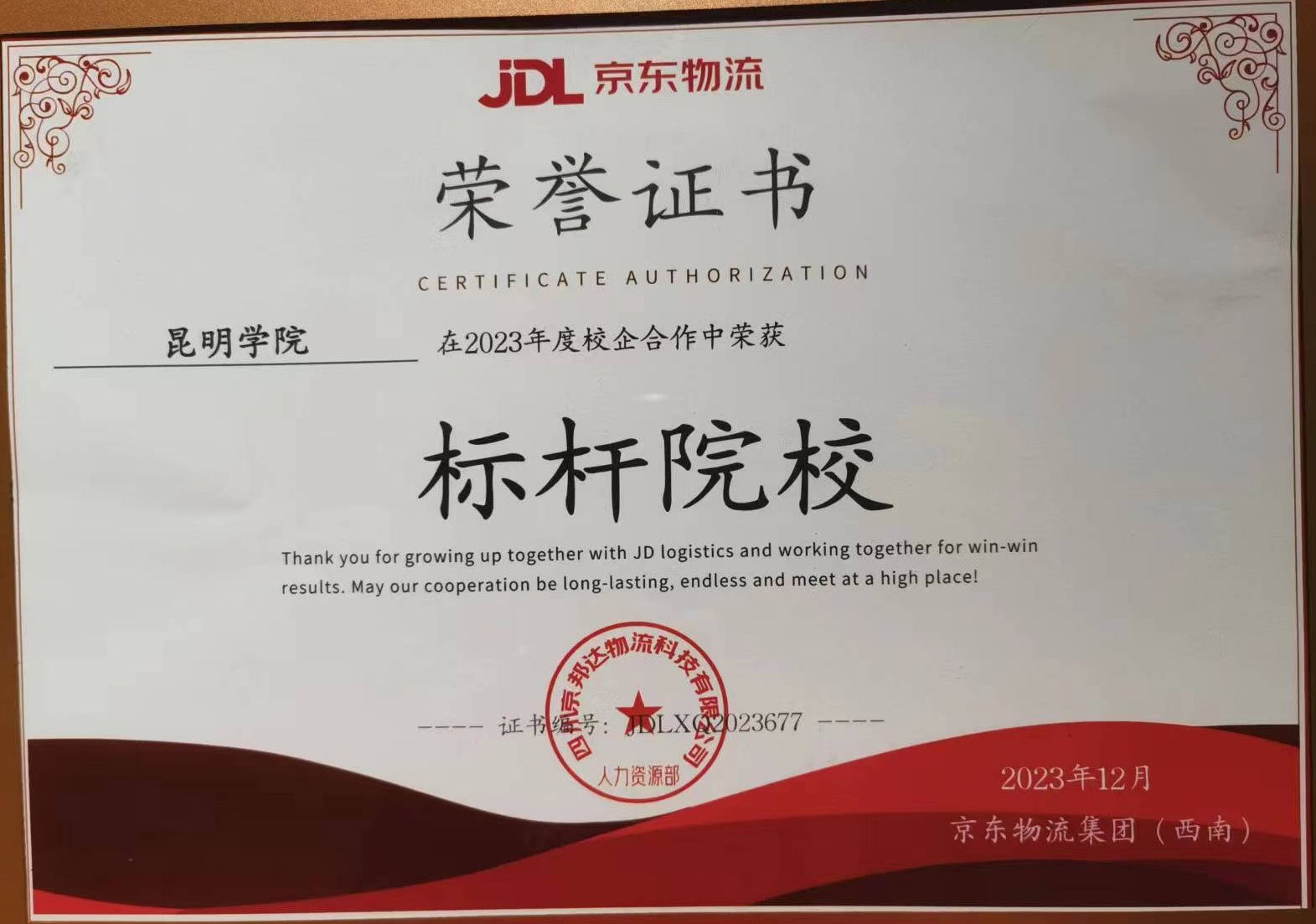 必赢国际437官网院长雷新华、副院长林涛应邀参会,代表学院领取了“合作标杆院校”奖项,此次获奖是京东物流集团对双方开展校企合作、产教融合工作的高度肯定。必赢官网自2019年签订校企合作协议以来,必赢国际437官网与京东物流云南京邦达公司合作共同开发课程、开展学生实习实训等方式开展合作,培养了学生专业实践能力,提升了学生的综合素质,强化了校企合作效果。