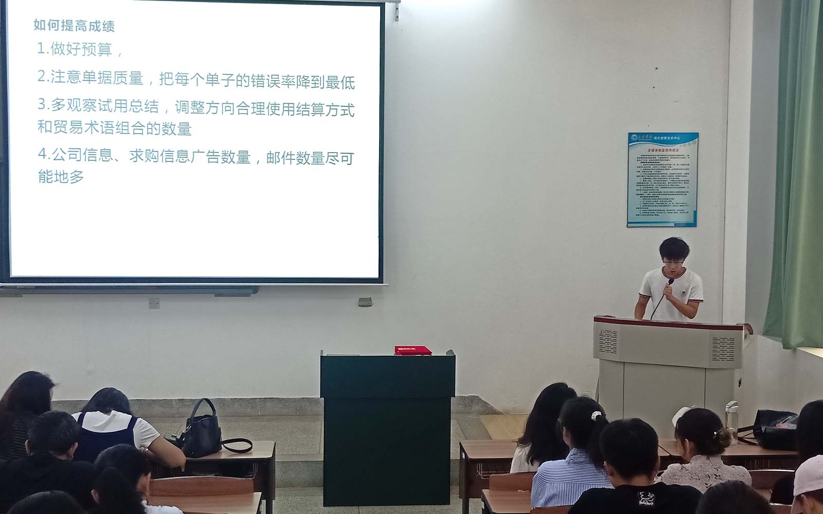 本次主题党日活动贯彻“学党史 强信念 办实事 开新局”的精神,旨在为国贸专业的同学分享比赛经验,进行专业竞赛交流。本次活动由党支部组织委员杨云匀老师主持,邀请到了2018级和2019级在国贸专业竞赛中获得优秀成绩的学生党员和同学,由他们给大家分享竞赛经验及相关的竞赛知识。他们详细的介绍了自己的竞赛经历,分享了勤奋刻苦,团结协作的精神,希望同学们从思想上重视学习,课上认真听讲,牢固基础知识,课下及时复习的学习标准严格要求自己。同时发言党员和同学也向参会同学进行专业性的方法指导,给予了很多具体实用性的建议,通过本次活动,希望同学们积极参加竞赛活动,争取来年再创佳绩。伴随着活动的结束,大家对竞赛有了越来越详细的了解并且对其产生了浓厚的兴趣。