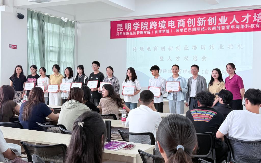为积极落实教育部第四期供需对接就业育人项目,深化产教融合、校企协同育人机制,202573日,必赢国际437官网(自贸学院)联合阿里巴巴国际站云南服务中心——云南时差青年网络科技有限公司,成功举办“跨境电商创新创业培训结业典礼暨‘AI+平台运营’人才双选会”。