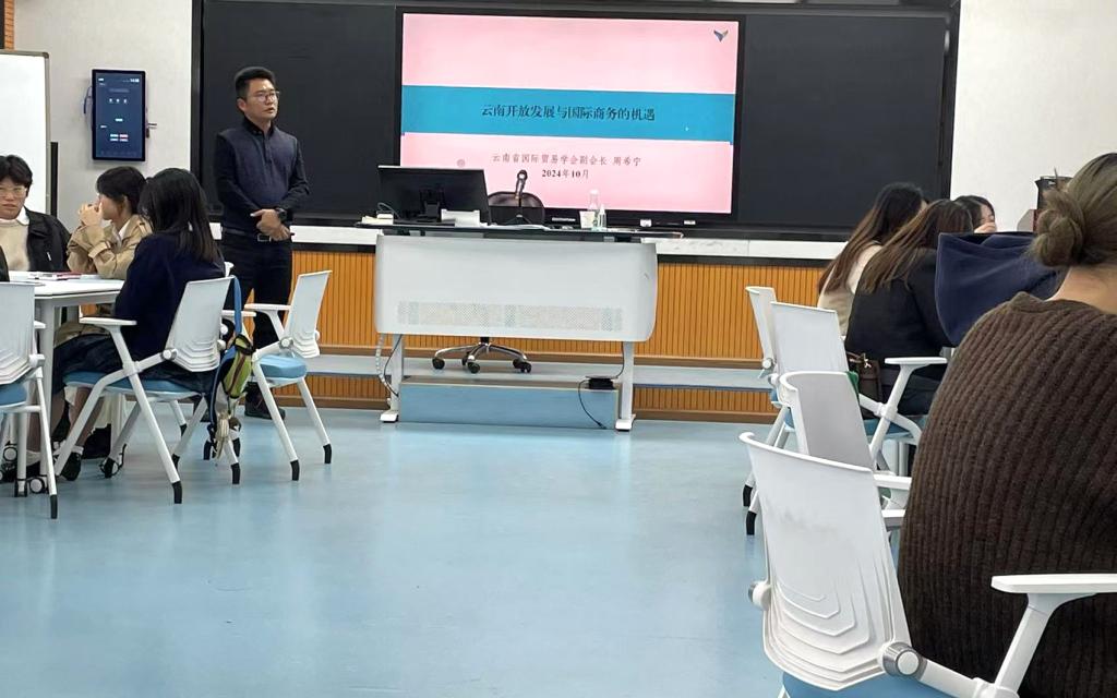 2024年10月9日,云南省国际贸易学会周希宁副会长应邀到校开展《云南开放发展与国际商务的机遇》科研讲座,讲座由必赢国际437官网(自贸学院)副院长曾伟教授主持,学...