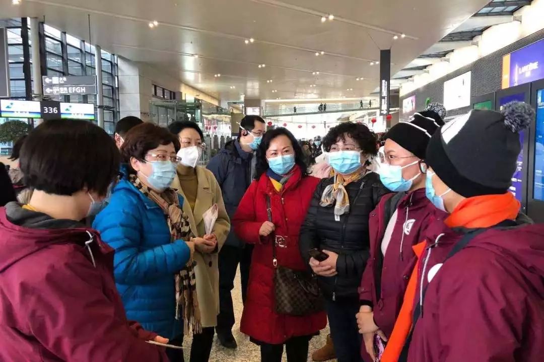 龙华医院李群、李黎梅、刘蕙宁三名护士响应号召,紧急整理行装,逆向而行随队出征武汉疫区。龙华医院党委副书记高炬、部分职能科室负责人及医务人员家属到虹桥机场送行。