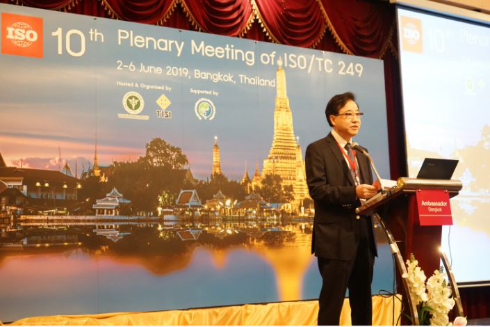 沈远东在ISO/TC 249第十次全体成员大会上作工作报告