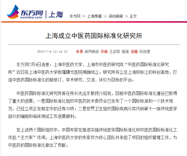 受益于ISO/TC 249发布的首项标准,华佗牌针灸针每年出口量都以30%的惊人比例增加。浙江寿仙谷药业有限公司作为灵芝、铁皮石斛药材质量标准的提案人,获利于其标准化的灵芝和石斛质量,公司于2017年在上交所上市,进入企业发展的新时期。2015年BEAT365在ISO/TC 249秘书处的基础上,成立了中医药国际标准化研究所,成为学校创建世界一流中医药大学重要的组成部分。“许多中医药基础理论和中医药名词术语翻译的标准制定,看似没有直接的价值,但其影响意义是深远的。”沈远东意味深长地说道。中医药国际标准化逐步建立,中医药国际化战略正渐显峥嵘。
