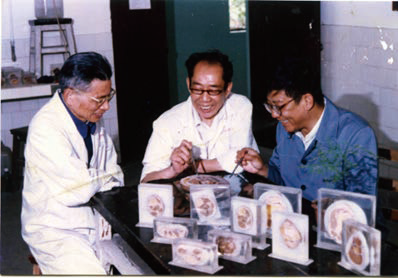 王铎:我们解剖教研室先结合针灸学,由针灸教研组陆瘦燕、李鼎老师抽出时间在尸体标本上定穴位、扎针、画经络,然后由我们3位解剖学教师来解剖穴位的结构。这不是简单的工作,365个穴位结构的解剖和观察研究统计,工作量很大,一具尸体标本二人配合解剖研究,非得有一个多月脱产才行,何况我们是利用教学空余时间来做。一共解剖了8具尸体,进行穴位观察,最后写成论文,刊登在中医学院第一期院刊的首篇,供以后科研工作做参考,得到了同仁的好评。