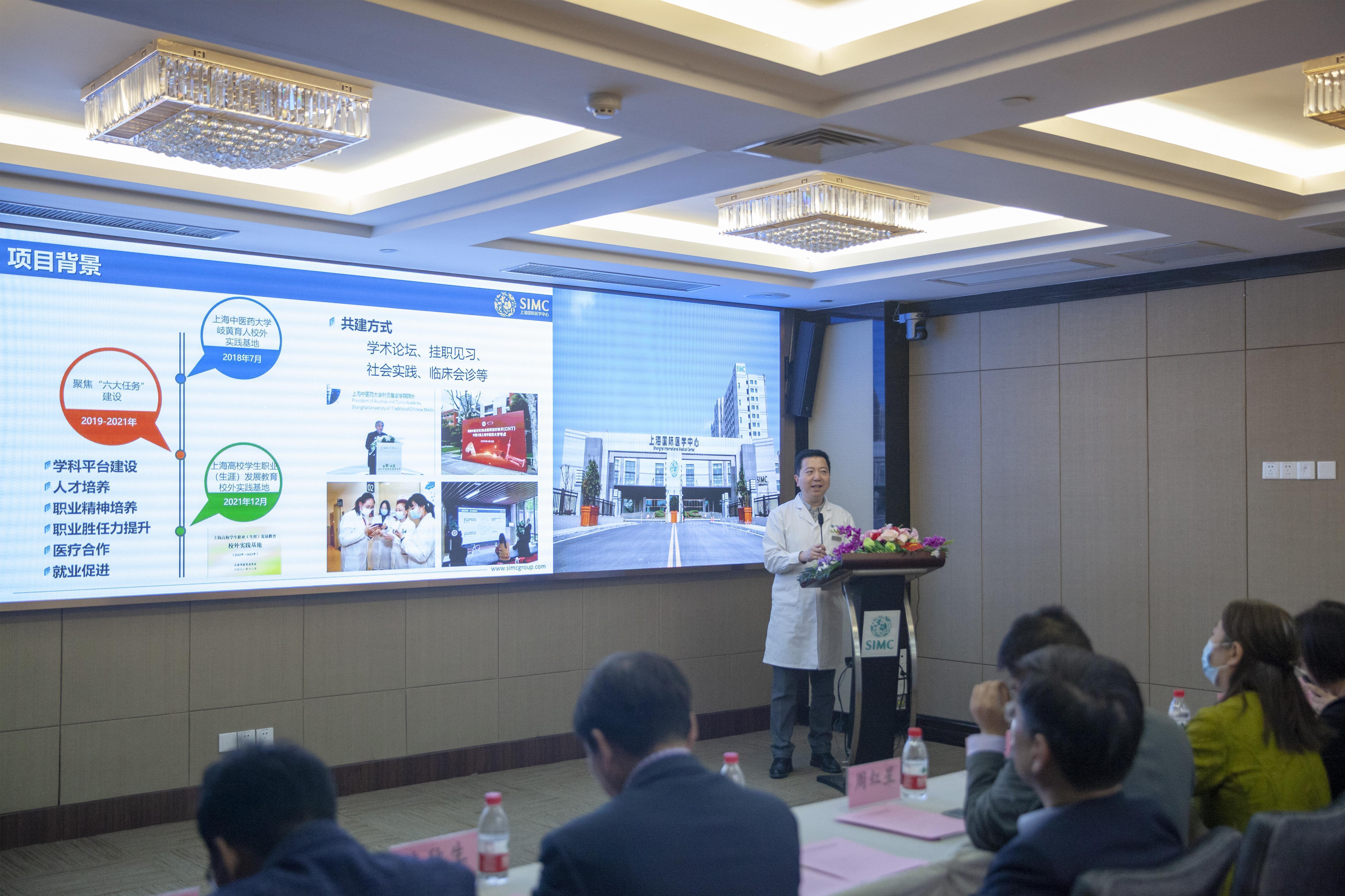 蒋尔鹏回顾了过去5年医院与针灸推拿学院合作建设实践育人基地的历程。双方在学科平台建设、人才培育、职业价值培养、职业能力提升、医疗合作和就业促进等方面开展了丰富有效的实务工作。他表示,今后将继续深入探索全员、全方位、全过程医学生职业生涯教育模式,力争通过2年的建设期,将上海国际医学中心建设成为教师能力培养基地、人才培训基地、教育教学改革基地和社会服务基地的综合体,探索培养扎根中国大地、具有国际化视野及全球医疗执业能力、提升中华文化软实力的新时代中医药人才。
