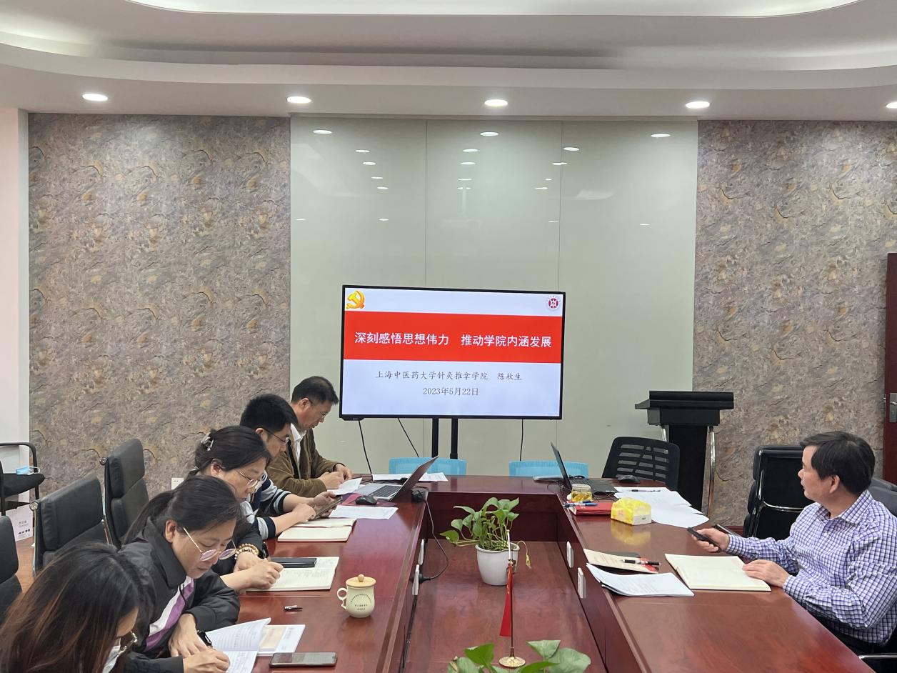 各支部书记、委员交流了本支部在主题教育期间组织生活会和教职工政治理论学习的开展情况。学生党支部组织开展针推学子“学党章 学思想”明理研习会,将理论学习与承诺践诺相结合。教工党支部组织党员、教师认真研读《习近平新时代中国特色社会主义思想专题摘编》,学习贯彻习近平总书记关于健康中国、中医药工作的重要论述,并将之有机融入专业教学。会议要求各支部抓好常态化理论学习,切实把学习成果转化运用到实际工作中。