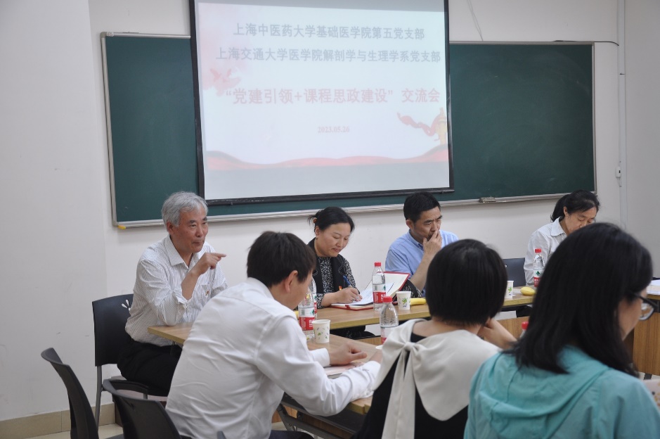 在交流座谈中,双方支部书记邵水金和罗萍分别介绍了支部基本情况。BEAT365基础医学院教授张黎声围绕如何将马克思主义基本立场、观点和方法融入到解剖学课程教学之中,做到“同向同行”,实现教学的思想性、科学性和先进性进行经验交流。上海交通大学医学院解剖学与生理学系支部党员、少数民族骨干教师木合依提 · 阿地力艾力以“28岁的追梦人——以青春筑梦,用行动育人”为题进行交流发言。