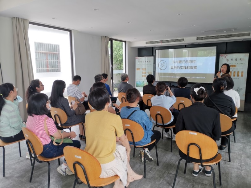 奉贤区吴房村党支部宣传委员吴丹红介绍了吴房村的历史并陪同参观。吴房村位于奉贤区青村镇,至今已有300多年历史,是上海第一批9个乡村振兴示范村之一。近年来,吴房村紧紧抓住上海市乡村振兴示范村创建战略机遇,在村级思想引领、精神面貌、人居环境及社会治理等方面开展全方面、多层次、宽领域的探索及实践。